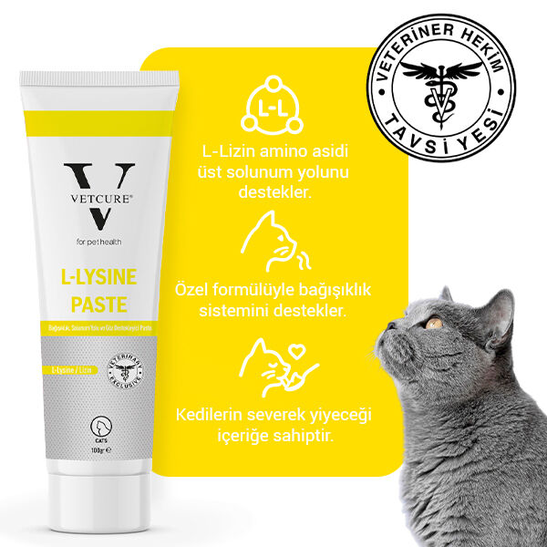 Vetcure L-Lysine Kedi Bağışıklık ve Solunum Yolu Destekleyici Paste 100 gr