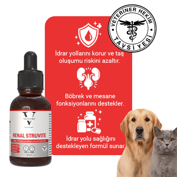 Vetcure Renal Struvite Kedi ve Köpek Böbrek Taşı ve İdrar Yolu Sağlığı Destekleyici Likit 50 ML