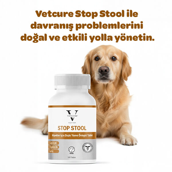 Vetcure Stop Stool, dışkı yeme (koprofaji) davranışı gösteren köpekler için geliştirilmiş veteriner destekli bir davranış düzenleyici takviyedir. İçeriğindeki B vitaminleri sinir sistemi üzerinde düzenleyici etki gösterirken; sarımsak ve kırmızı biber özleri sayesinde dışkının tadı köpekler için itici hale gelir ve bu davranışın zamanla bırakılmasını destekler.