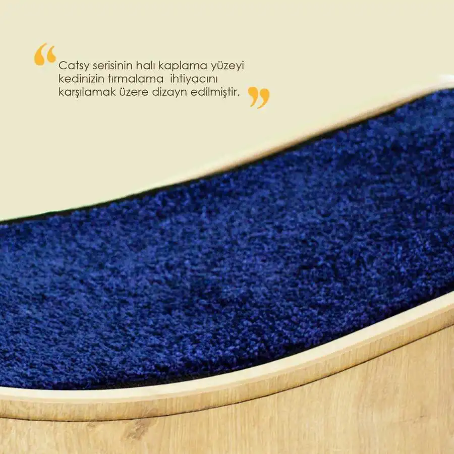 *Ürünün dış katmanında lacivert renkte, kedinizin tırmalama ihtiyacını karşılayan özel dokuma halı kullanılmıştır.