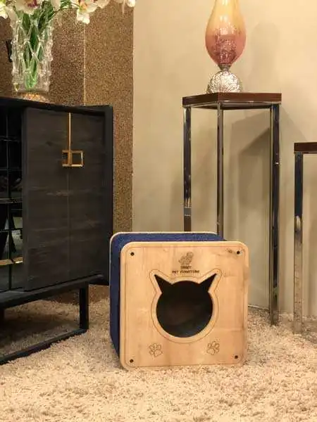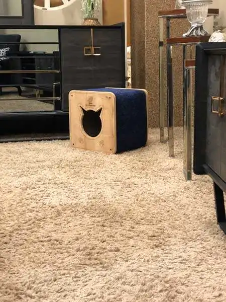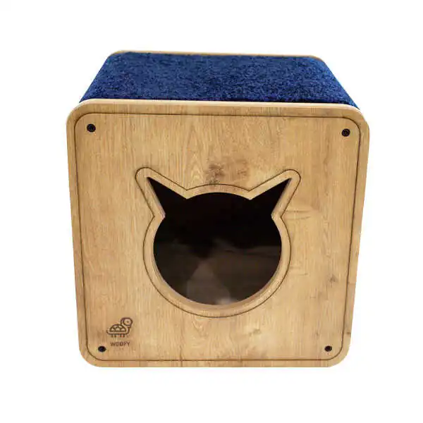 *Ürünün dış katmanında lacivert renkte, kedinizin tırmalama ihtiyacını karşılayan özel dokuma halı kullanılmıştır.