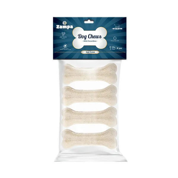 Zampa Beyaz Press Kemik, köpeğinizin doğal çiğneme içgüdüsünü destekleyen, sağlıklı ve lezzetli bir ödül mamasıdır. Her biri 30-40 gram ağırlığında olan bu kemikler, köpeğinizin hem eğlenmesini hem de diş sağlığını desteklemesini sağlar. Paket içerisinde 4 adet kemik bulunur ve uzun süreli çiğneme keyfi sunar.