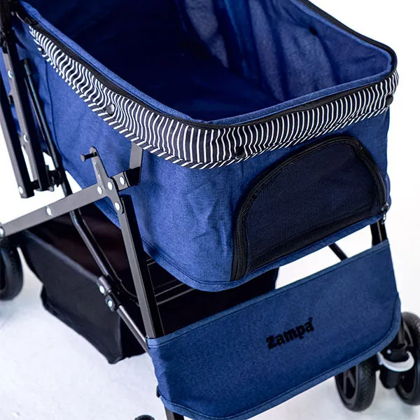 Zampa Nova Kedi & Köpek Arabası, küçük ırk köpekler ve her türden kedinin konforlu bir şekilde taşınması için tasarlanmış şık ve kullanışlı bir üründür. Lacivert rengiyle modern bir görünüm sunarken, dayanıklı yapısıyla uzun süreli kullanım imkânı sağlar.