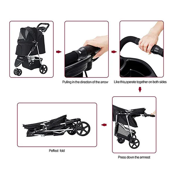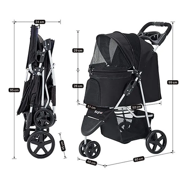 Zampa TriBoro Kedi & Köpek Arabası Siyah, 45x80x90 cm