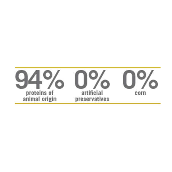 İçerik: kemiksiz kuzu (22%), kurutulmuş kuzu proteini (20%), kılçıksız buğday (%10), yulaf (%10), tavuk yağı, kurutulmuş yumurta, ringa balığı, kurutulmuş ringa balığı proteini, balık yağı (ringa balığı), kurutulmuş pancar posası, kurutulmuş havuc, kurutulmuş yonca, inulin, fruktooligosakkarit, maya ekstraktı (mannooligosakkarit kaynağı), kurutulmuş yaban mersini (%0.5), kurutulmuş tatlı portakal, kurutulmuş elma, kurutulmuş nar, kurutulmuş ıspanak, fisilyum kabukları ve tohumları (%0.3), sodyum klorür, kurutulmuş bira mayası, zerdeçal (%0.2), aloe vera ekstraktı.