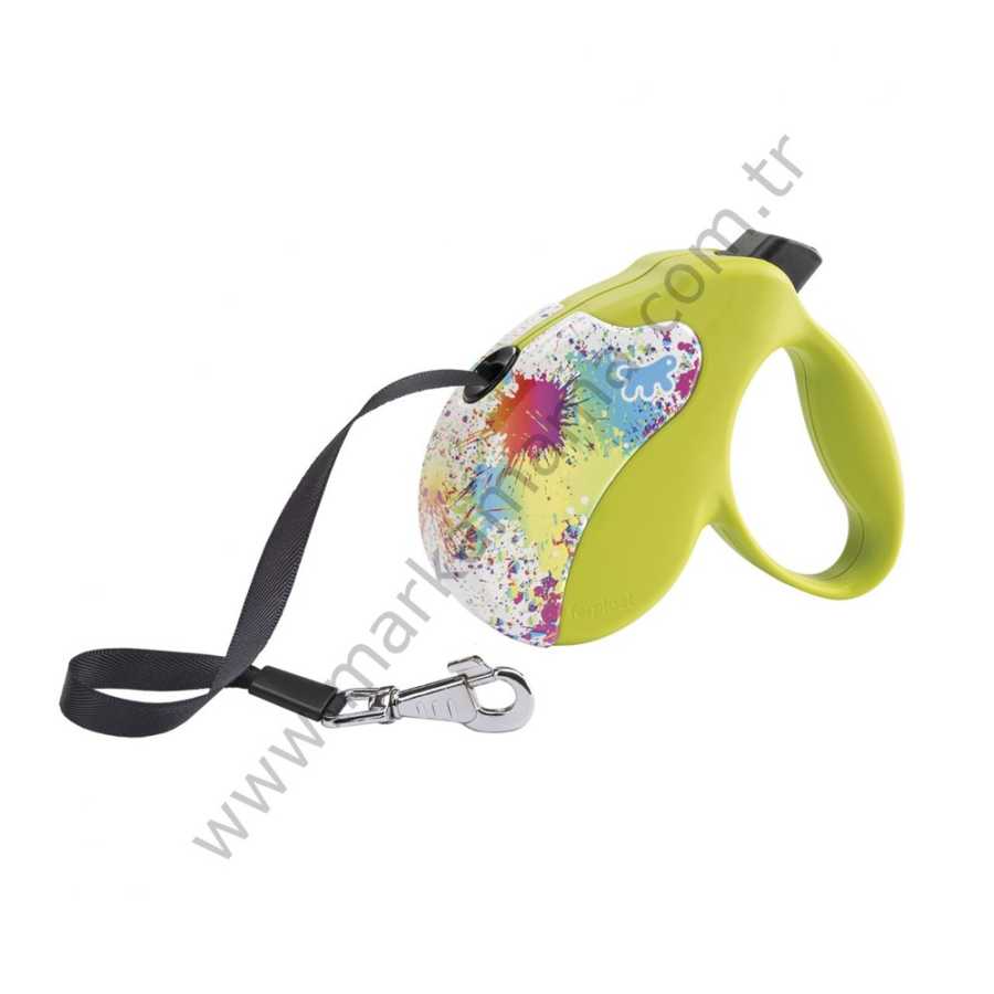 FerPlast Amigo Medium Dekor Spots Otomatik Şerit Köpek Gezdirme Tasması
