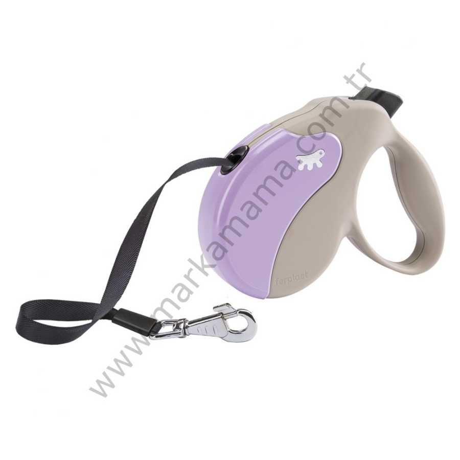 FerPlast Amigo Large Lila-Bej Otomatik Şerit Köpek Gezdirme Tasması 50KG 5 Metre