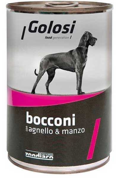Golosi kuzu etli ve sığır etli köpek konservesi, tam bir mamadır. Koruyucu madde ilave edilmemiştir.