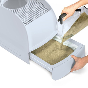 Çekmeceli hazne, kedi kumunu kolayca doldurmanızı ve boşaltmanızı sağlar. Günlük bakım için topaklanan bölümleri zahmetsizce temizleyebilirsiniz. Üstteki elekli yapı sayesinde iç kısımda biriken kumlar israf olmadan yeniden kullanılabilir.