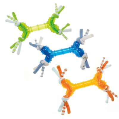 Kemik şeklinde içinden pamuk ip geçen 27 cm boyutunda 8 cm genişliğinde bir oyuncaktır . Göz alıcı rengi sayesinde köpeğinizin dikkatini çekecektir.