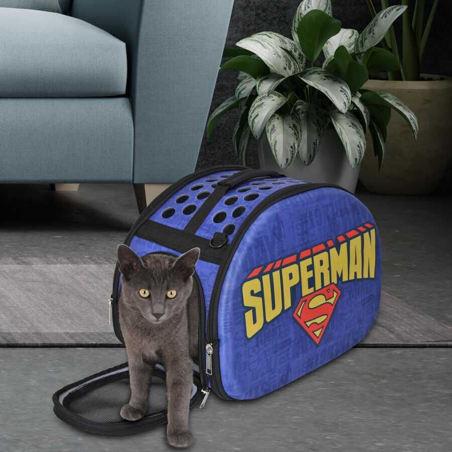 Süperman 3D Eva Kedi ve Köpek Taşıma Çantası Mavi