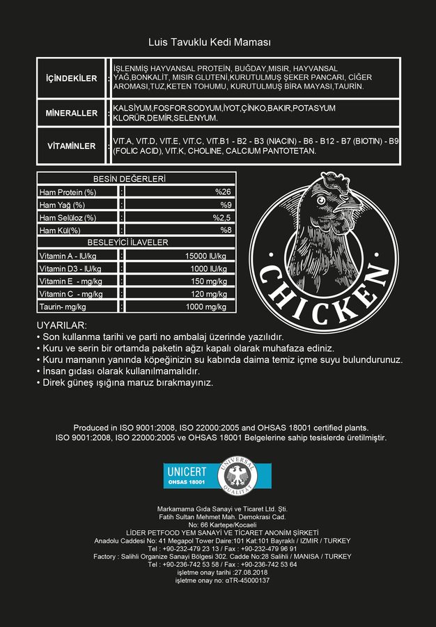 Luis Tavuklu Kedi Maması 15 KG