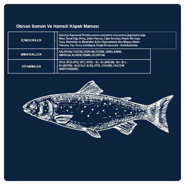 Doğadan gelen muhteşem lezzetlerin karışımıyla yapılan Obivan Somonlu ve Hamsili köpek maması 1 yaşın üzerindeki yetişkin köpeğinize özel olarak hazırlanmıştır.Köpeğinizin düzenli enerji ve fit bir vücut yapısı için içeriğindeki proteinler, antioksidan, vitamin ve mineraller maksimum sağlık ve bağışıklık sunmak için formüle edilmiştir.