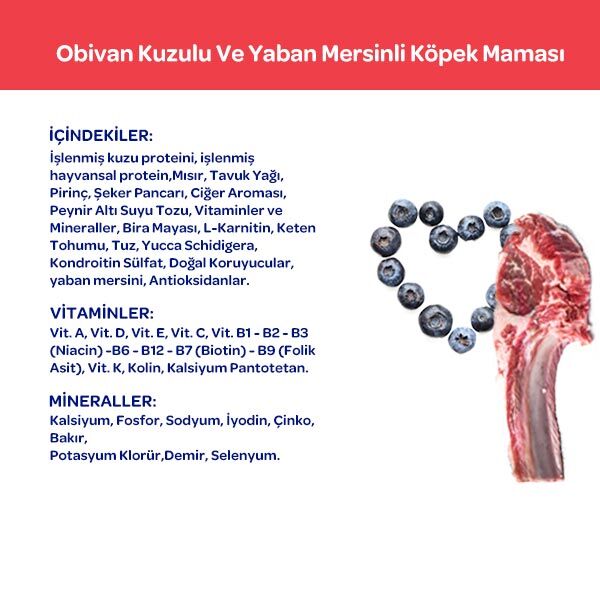 Obivan Kuzu Etli ve Yaban Mersinli Köpek Maması – 15 KG