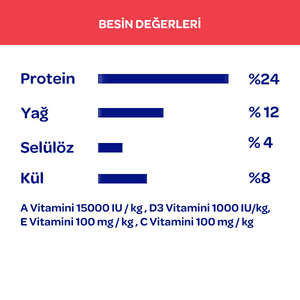 Kuzu ve diğer hayvansal protein kaynaklarından elde edilen %24 ham protein oranı, köpeğinizin aktif yapısını destekler, kas gelişimini destekler.