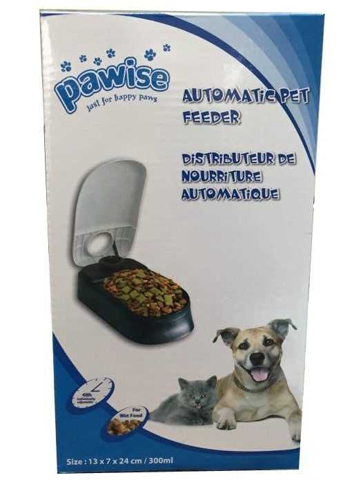 Pawise Zaman Ayarlı Mama Kabi Tekli Kedi ve köpekler için, 48 saate kadar zaman ayarlama özelliği bulunan kuru mama veya korserve mama konabilen, plastik malzemeden yapılmış, mama kabı setidir. * Kuru ve konserve mama kullanımı için uygundur.* Mama kabının altında bulunan buz torbası ile mamanın taze kalması sağlanır. Ebatları; En 13 cm Boy 24 cmYükseklik 7 cm Ürünün Kullanım Şekli;* Pilleri taktıktan sonra pil bölmesinin yanında bulunan güç düğmesini açınız.* Mama bölümüne kuru mamayı koyunuz.Uyarılar;* 7 aydan küçük yavrular için kullanmayınız.* Düz ve kuru bir yere yerleştiriniz.* Düşük batarya ışığı belirdiğinde pilleri değiştiriniz.