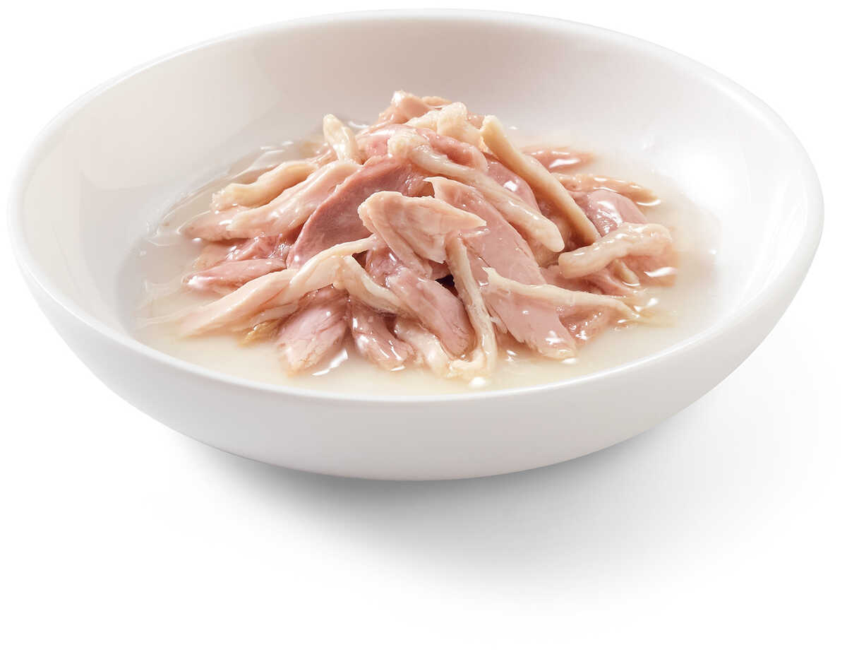 Schesir Doğal Ton Balıklı ve Tavuklu Soslu Yaş Kedi Maması Tam ve dengeli yaş veya kuru mamalar ile günde 2 pakete kadar servis ediniz.