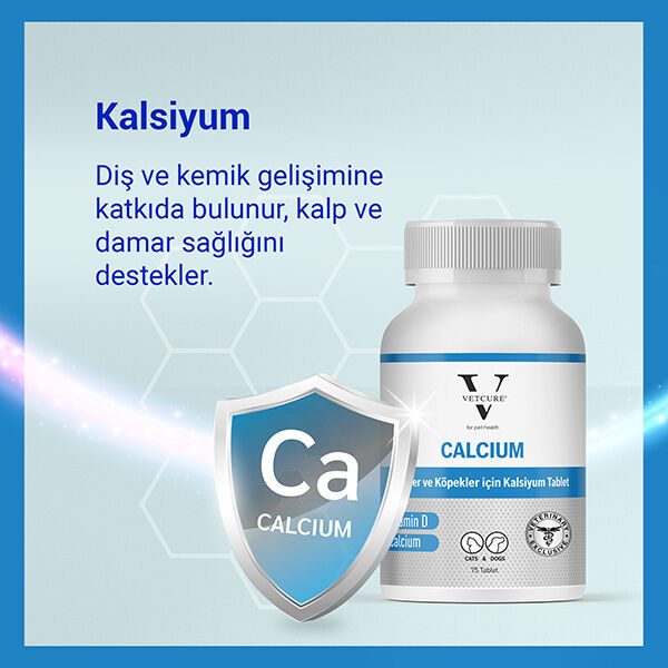 Vetcure Calcium Kedi ve Köpekler İçin Kalsiyum Desteği 75 Tablet