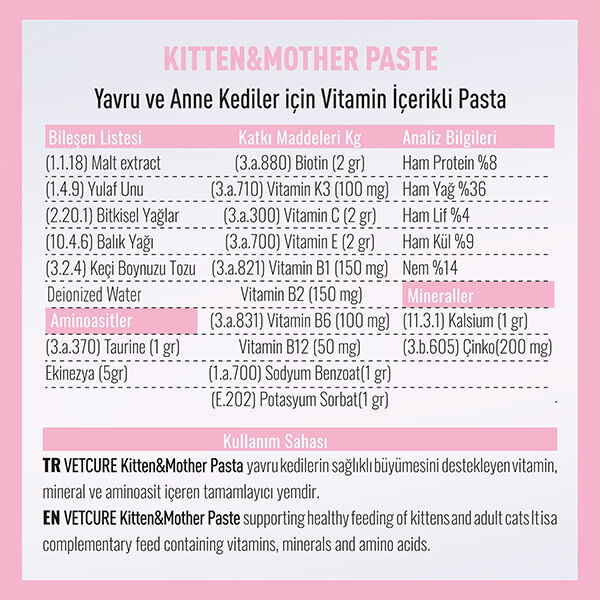 Vetcure Kitten Paste ile yavrunuza güvenli bir başlangıç, annesine güçlü bir destek verin.